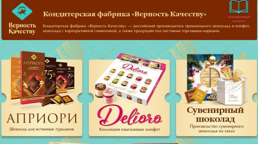 Годовой оборот фабрики около полумиллиарда рублей. Поставляет шоколадные изделия она и госструктурам: банку ВТБ, ФГУП Президент-Отель , структурам Минздрава. Изготавливало ООО Верность качеству также сувенирную кондитерскую продукцию для впервые голосующих на выборы депутатов Госдумы и для ТАСС.