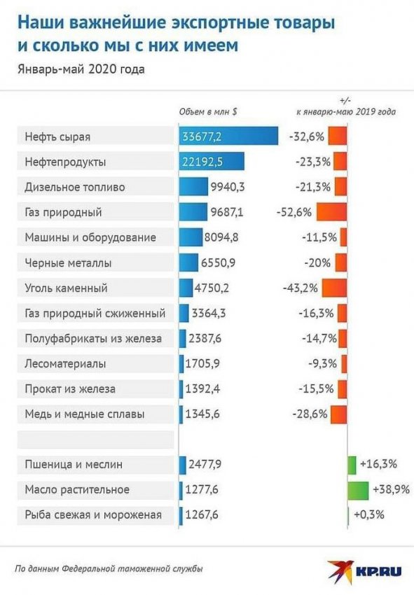 Вот, кстати, картиночка, дающее исчерпывающее представление о состоянии экспорта нашего великодержавного сырьевого придатка в первой половине года.