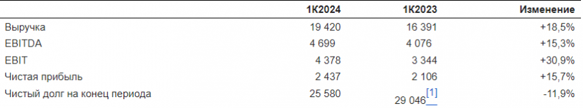 Чистая прибыль увеличилась более чем на 15%, что существенно ниже динамики показателя EBIT, в основном по причине роста чистых финансовых расходов в связи с общим увеличением рыночных процентных ставок по сравнению с 1 кварталом 2023 года.