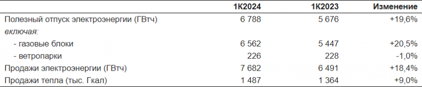 Компании удалось увеличить полезный отпуск электроэнергии практически на 20%, а также нарастить продажи электроэнергии и тепла в первом квартале 2024 года на фоне благоприятных рыночных и климатических условий.