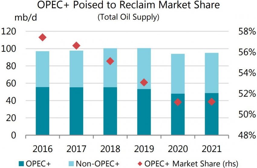 Если стороны соглашения будут придерживаться своих планов, ОПЕК + может начать возвращать долю рынка, которую она неуклонно теряла в пользу США и других стран с 2016 года.