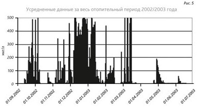 Из рис. 5 следует также, что средняя концентрация за отопительный сезон составляла не менее 200 мкг/л, что вызывало значительную коррозию отопительных систем.
