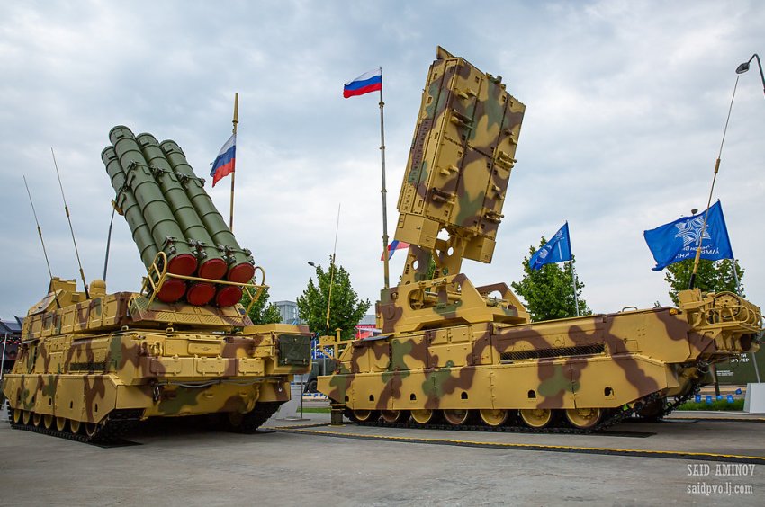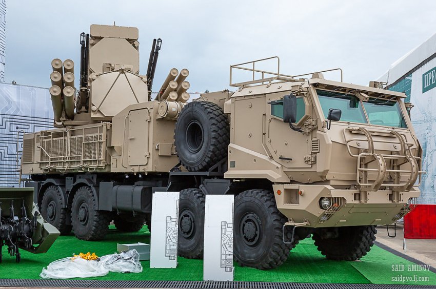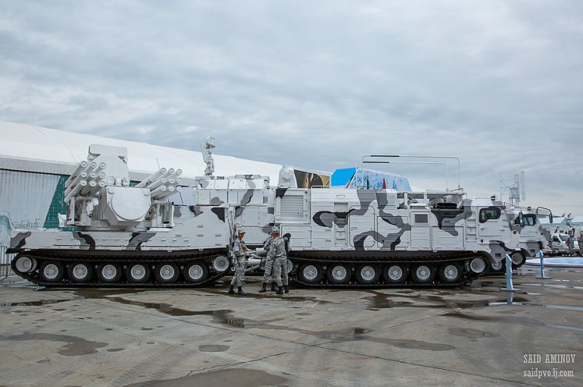 8. КБ Приборостроения представляет на выставке модернизированный ЗРПК "Панцирь-С1М", ориентированный на иностранных заказчиков. Обратите внимание на новую МФРЛС и тяжелое шасси "Торнадо".