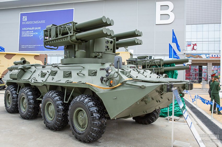 5. Концерн ВКО в этом году представляет два варианта самоходного ЗРК ближнего действия "Сосна" - на гусеничном шасси МТ-ЛБ и колесном шасси БТР-82А.
