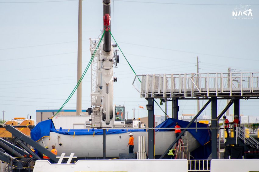 The active fairing half was unloaded from GO Searcher. This half has now completed three missions.