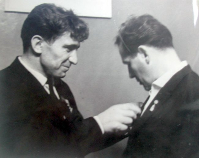 Награждение Г. Титова знаком «Шахтёрская слава» первой степени