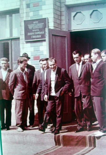29 августа Герман Титов с супругой привезли в Макеевку на шахту «Пролетарская-Глубокая». Естественно, на торжественный митинг по случаю визита космонавта прибыла вся областная и городская «верхушка», включая первого секретаря Донецкого обкома КП Украины Владимира Дегтярева. «Везде довелось мне побывать: на земле, в воздухе, в космосе, на воде и даже под водой — сказал Герман Титов собравшимся — а вот под землей еще не приходилось».